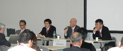 後半の座長は、東京農工大学の宮村先生(中央)に務めて頂きました。最後の講演者である日立の森様(左)への質問の場面です。